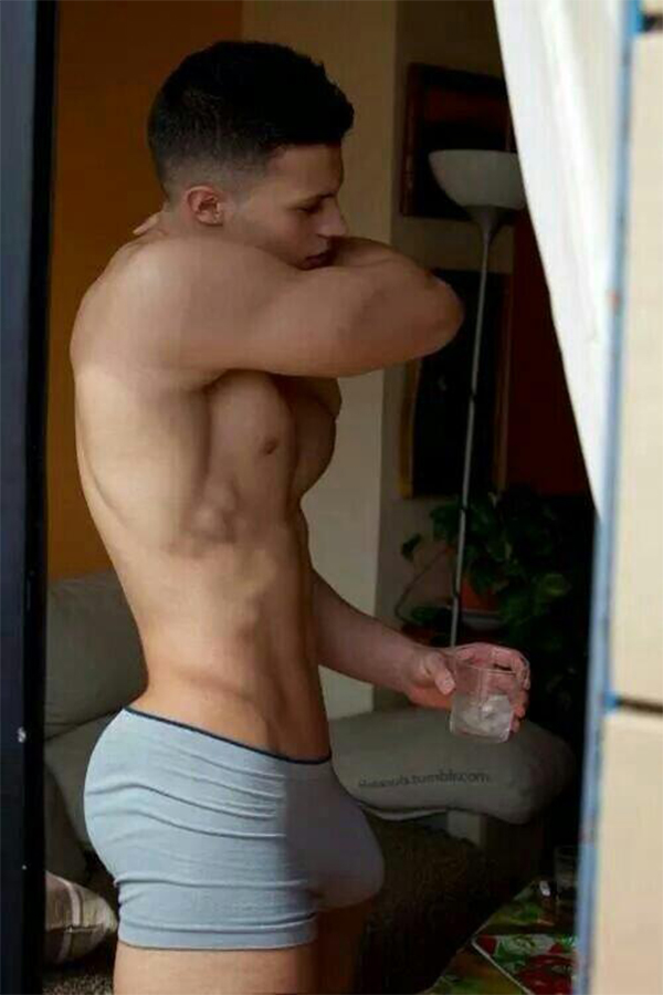 You only catch a glimpse of a guy in boxers. This underwear hugs the buttocks so well and flatters the curve of the penis.